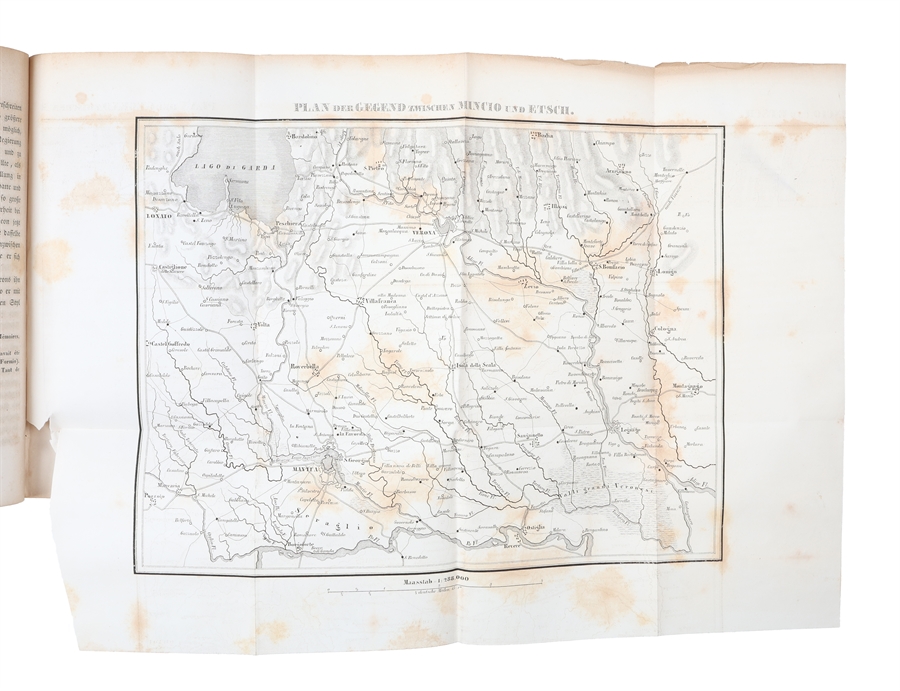 3 contemp. hcloth. Spines with gilt lettering. Stamps on title-pages. VIII,679,(1);(4),656;(4),570 pp. Lacks the Atlas with 19 plans/maps. Scattered brownspots.