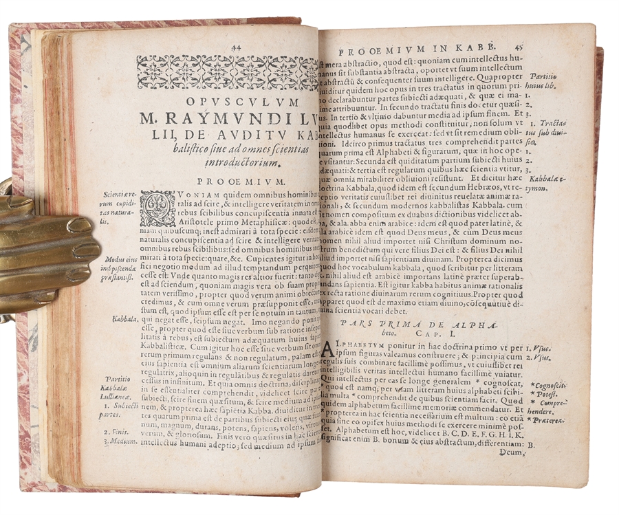 Scarce first edition of this seminal publication, which is practically solely responsible for the spreading of both Lullism and Bruno's mnemonic theories in the 17th century. This publication constitutes the standard work on Lull for more than a century and it directly influenced the most significant thinkers of the following century, e.g. Leibnitz, whose dream of a universal algebra was stimulated by the reading of Lull (and Bruno) in the present publication.