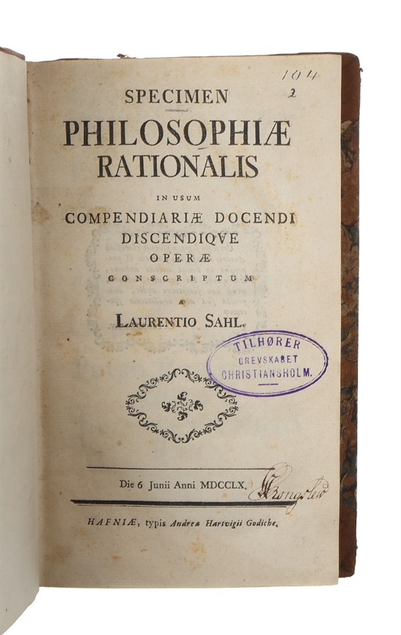 8vo. In contemporary half calf. Stamps to front free end-paper and title-page (Grevskabet Christiansholm) and previous owner's name in contemporary hand title-page. Lighht wear to extremities, internally nice and clean. (16), 182, (14) pp. + 1 folded table.