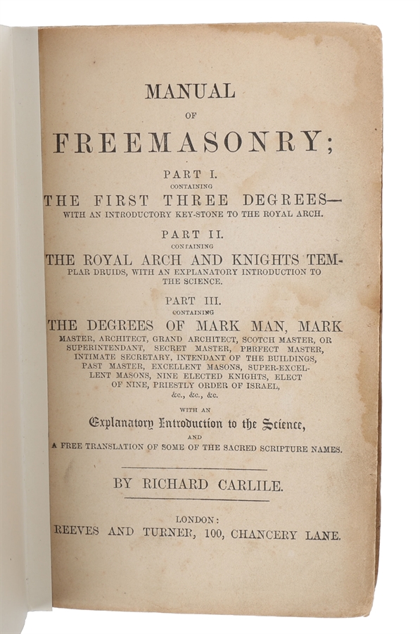 Later edition of Carlile’s famous manual of Freemasonry.