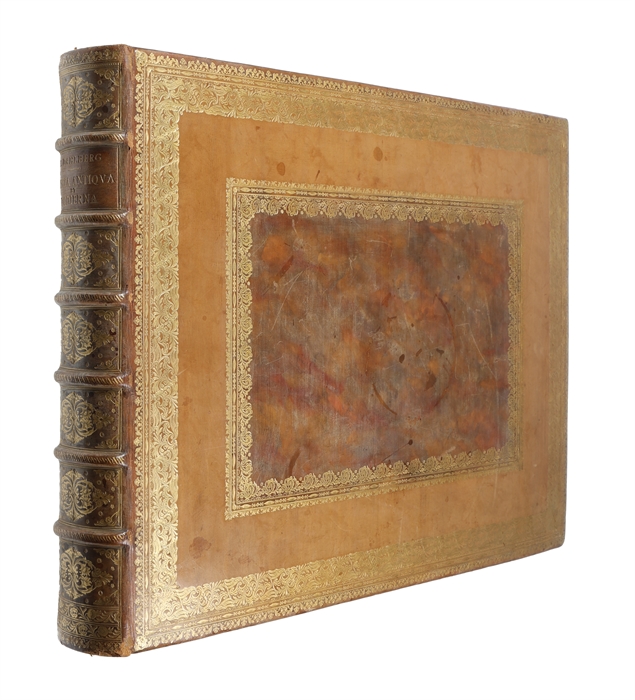 Queer-folio (365 x 480 mm). Magnificent full polished calf binding from ca 1900 by the Swedish master bookbinder Gustav Hedberg in Stockholm. Sumptuously gilt spine with six raised bands and gilt title-label. Boards splendidly gilt with broad ornamental borders and a darker polished calf centre. Edges of boards gilt and inner gilt dentelles. All edges gilt. A prime example of a master binding by Hedberg.