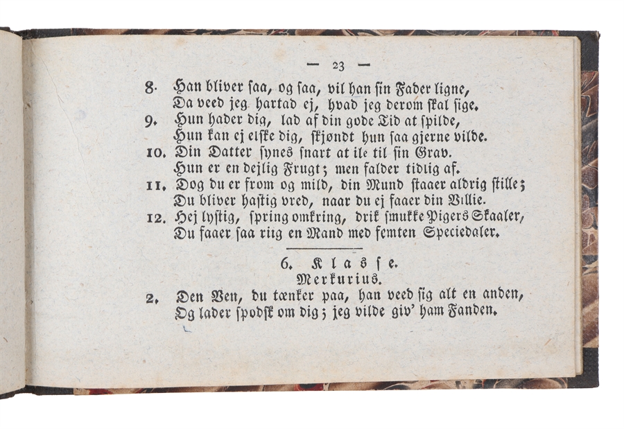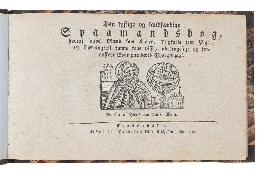 Den lystige og sandfærdige Spaamandsbog, hvoraf saavel Mænd som Koner, Ungkarle som Piger, ved Tærningkast kunne saae visse, ubedragelige og forønskede Svar paa deres Spørgsmaal. Oversat aaf Tydsk paa danske Riim.