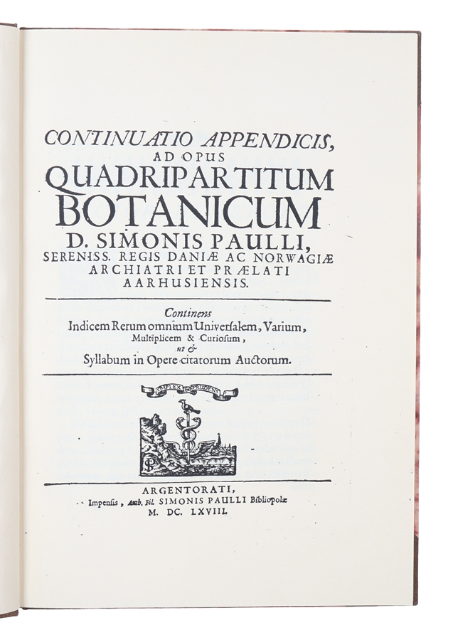Continuatio appendicis, ad opus Quadripartitum botanicum d. Simonis Paulli, sereniss. regis Daniæ ac Norwagiæ archiatri et prælati Aarhusiensis.