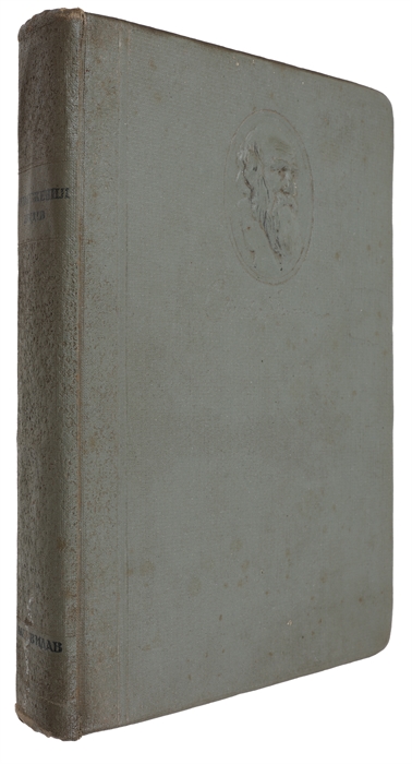 8vo. In publisher's original grey cloth binding with black lettering to spine with Darwin's portrait embossed on front board. Wear to extremities, corner bumped and light spoling to back board. Inner hinges split and first 3 leaves partly detached. Last 20 ff. slighly creased due to dampstain, otherwise internally a nice and clean copy. 674 pp. + frontispiece, portrait of Darwin and 1 plate with genealogical tree.