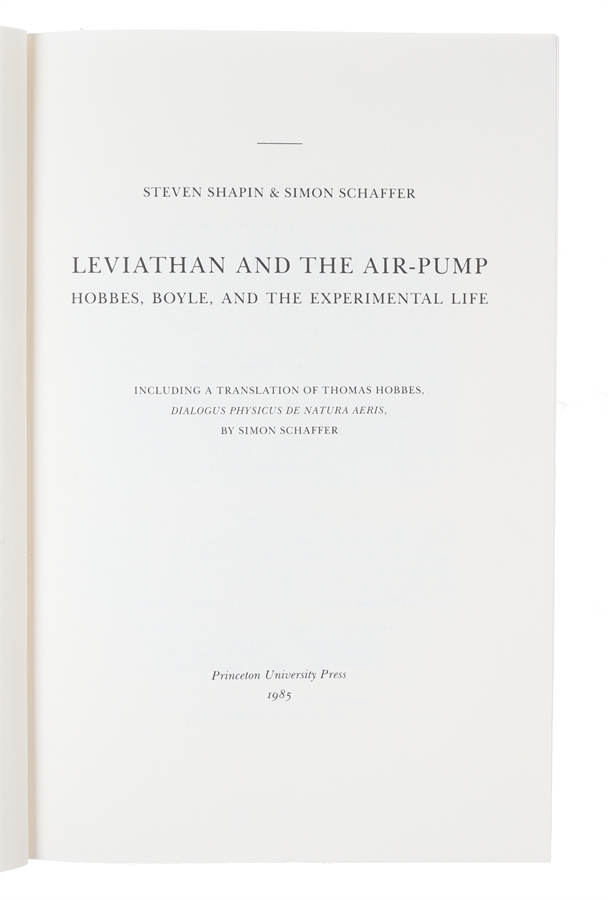 Leviathan and the Air-Pump. Hobbes, Boyle, and the Experimental Life. Including a Translation of Thomas Hobbes, Dialogus Physicus de Natura Aeris, by Simon Schaffer.