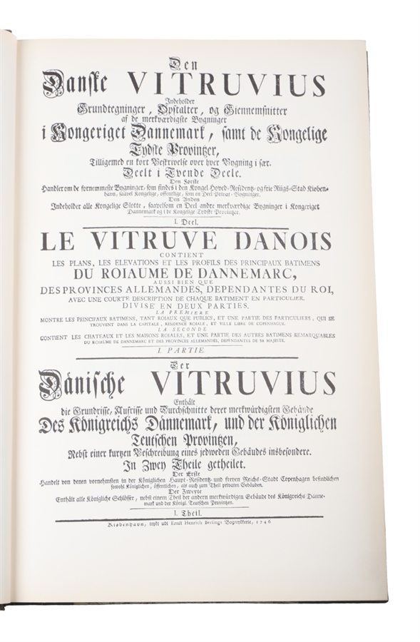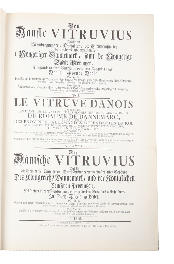 Photographic reprint of "The Danish Vitruvius", originally published 1746-49, the only extensive Danish work of architecture, a Baroque masterpiece that is of great international importance.