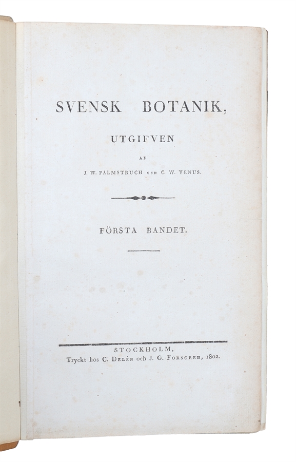 Palmstruch had learned drawing from Desprez and planned his magnificent work using Flora Danica and Sowerby's English Botany as models. The work was "esteemed by contemporaries as an enterprise of national importance. Palmstruch's own illustrations, in the six first volumes, have been characterized as the best pictures of plants ever produced in Sweden, and make this one of the most beautiful of Swedish books" (Lindberg, Swedish Books).