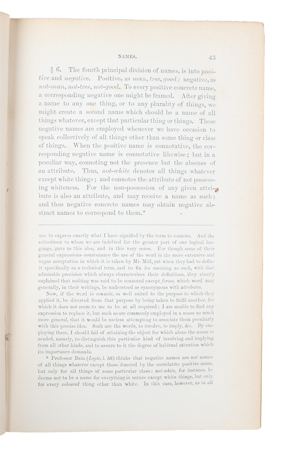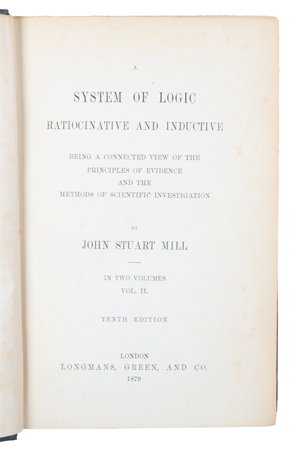 Tenth edition of what is probably Mill's greatest book, an epochal work in logical enquiry, not only for British philosophy, but for modern thought in general.