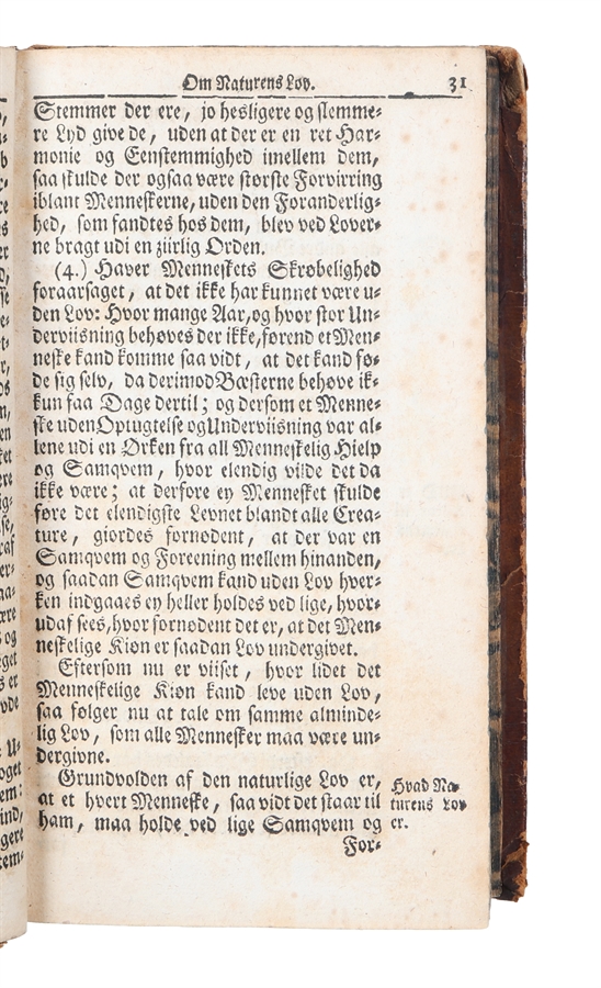 Fjerdeudgaven af Holbergs måske største bogsucces. Alle udgaverne af Holbergs Natur- og Folkeret er af største sjældenhed.