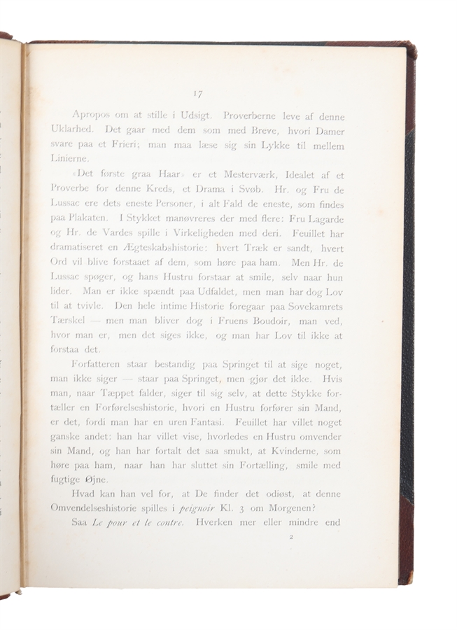 8vo. I samtidigt halvlæderbind. Med egenhændig dedikation fra Bang: "Fru Betty Hennings / vor eneste "Nora" /med tak og Hilsen fra H. B.". B>ind med en smule slitage og indvendig sporadisk brunplettet. (4), 228 pp.