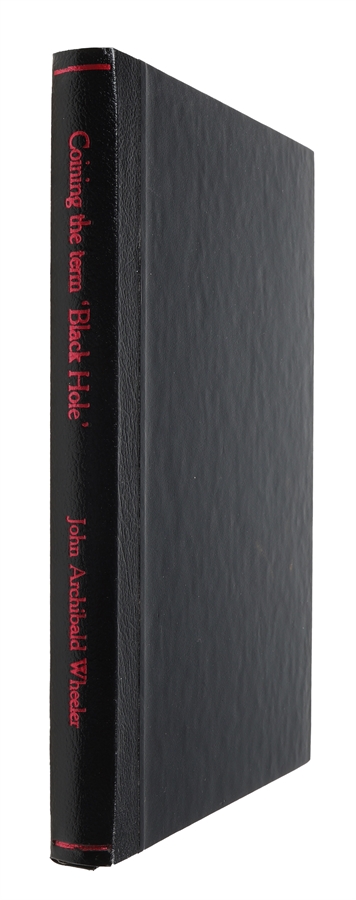 First printing of the seminal paper that coined the term "black hole", giving name to a then peculiar and controversial field of study that today is considered one of the most important in modern physics and a key to understanding the universe. "In 1968, physicist John Archibald Wheeler popularized the term "black hole" to describe collapsed stars that have undergone total gravitational collapse, leading to a singularity from which no light can escape... Wheeler's introduction of the term helped to demystify the concept of black holes and fostered greater public and scientific interest in the field. His pioneering research contributed to the understanding of the potential existence of black holes as significant energy sources, particularly in the centers of galaxies, and positioned him alongside other prominent figures in theoretical physics. The ongoing search for black holes, including candidates like Cygnus X-1, continues to inspire research and deepen our understanding of fundamental cosmic phenomena and the fabric of space-time." (Zabilka). A black hole is a supermassive star that has collapsed due to exhausting its supply of nuclear fuel, and therefore gravity compresses it into a superdense sphere that absorbs anything that approaches it; not even light can escape. John Archibald Wheeler was a pioneer in black hole research and responsible for popularizing our undersatnding of this complex phenomenon. He was a prominent physicist and mentor for Nobel prize winner, Kip S. Thorne. "John Archibald Wheeler is a major figure in twentieth century particle and gravitational physics. Along with Schwarzschild, Oppenheimer, Roy Kerr, and Stephen W. Hawking, he stands as a pioneer in the understanding and theory of black holes. Among the most significant contributions Wheeler made was breaking down the psychological barrier that exists for scientists and public alike to believe in something that has an esoteric name. By giving the singularity a common name like black hole, Wheeler put it within reach and made acceptance of the unusual theoretical results easier. Wheeler’s timing was also impeccable. While Wheeler and many others, especially Hawking, had been studying singularities for several years immediately after the radio discovery of the pulsars and their explanation in terms of neutron stars, the total collapse into singularities was the next logical step. By giving these objects a catchy name, Wheeler was able to bring them to attention and start the massive outpouring of interest that followed. Black holes provide clues to the resolution of outstanding difficulties in cosmology. They have been proposed as explanations of the missing mass needed to bring the mass of the universe to a level where the expansion will be slow and eventually reverse into the next phase of collapse. They have been proposed as a source of the massive energy outpouring of the quasars. Further, they appear to hold significant implications for studies in the field of general relativity. Wheeler has pioneered in seeking a theory that would combine quantum physics and general relativity into a theory of quantum gravity, a first step in formulating the long-sought unified field theory in relativity studies. At the present time, relativistic equations break down when confronted with the infinite forces and gravity of a singularity. The most fruitful consequence of the naming and study of black holes has been the significant research stimulated by the effort to find black holes. While incontrovertible proof is not yet available, Cygnus X-1 and two or three other dynamical doubles where objects on the order of 10 solar masses are invisible are circumstantial candidates for status as black holes. The search to strengthen the evidence continues, and exciting results will continue to develop."