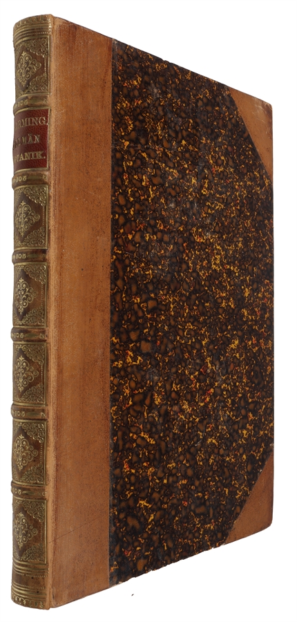 8vo. Bound with the original frontwrapper in a nice contemporary half calf binding (by J. A. Hedman) with six raised bands and richly gilt spine. Light wear to extremities and frontwrapper reinforced in upper and lower margin. Internally nice and clean. VII, (1), 279 pp.
