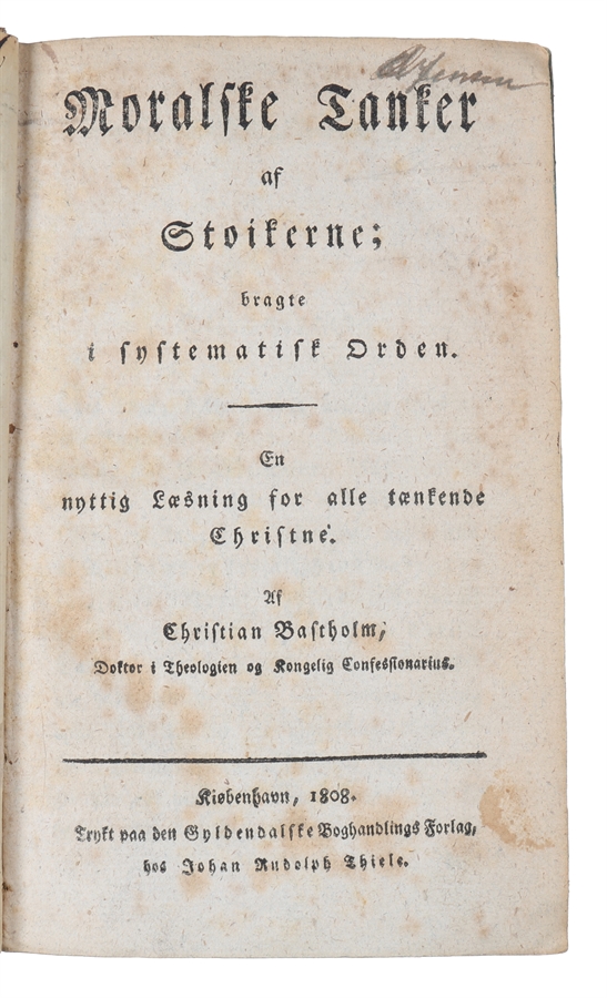 Moralske Tanker af Stoikerne, bragte i systematisk Orden. En nyttig Læsning for alle tænkende Christne.