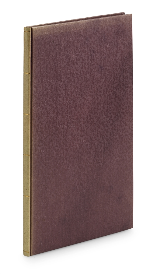 8vo. 59 pp. Beautiful newer purple full patterned cloth with gilt lines to spine, reminiscent of the bindings Kierkegaard had made for himself. A splendid, partly uncut copy with a bit of brownspotting. With pencil-annotations to end-papers, the back one explaining that this is taken from an incomplete copy of Eighteen Upbuilding Discourses and has the blank leaf (pp. 3-4) preserved.